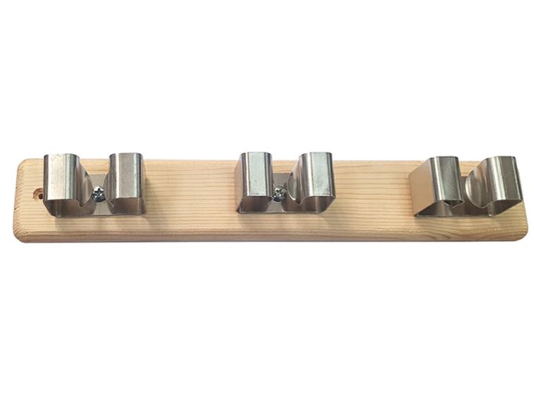PORTASCOPE 3 POSTI LEGNO NATURALE E GANCI INOX
